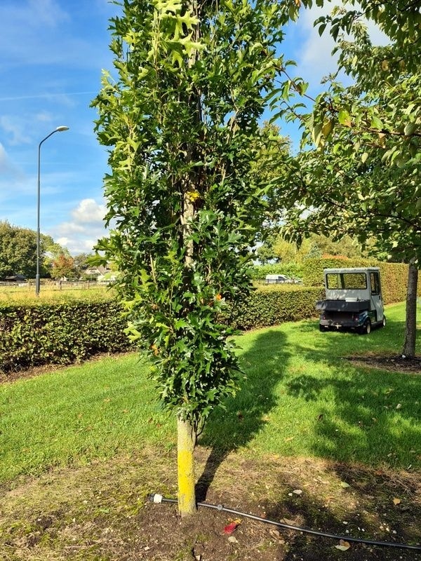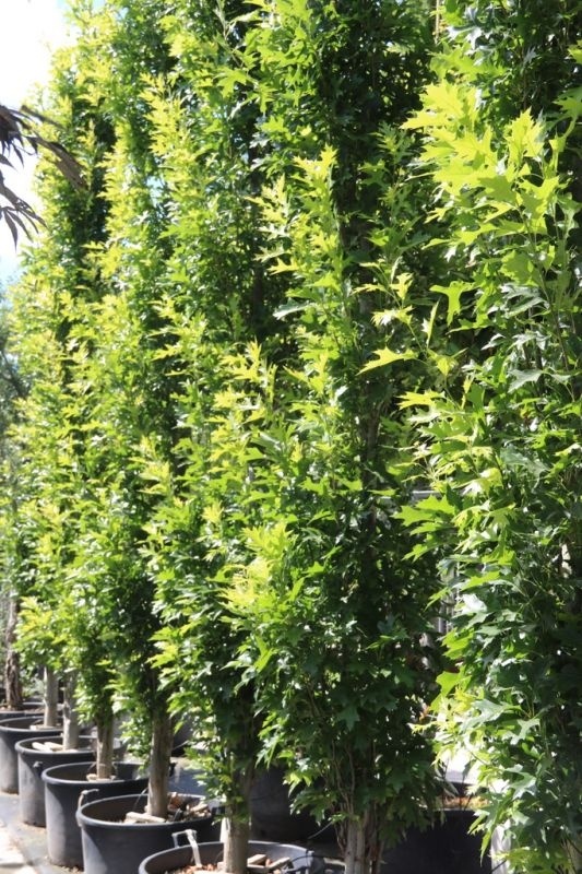 De zuilvormige eik verdraagt verharding vrij goed, hierdoor is deze zuilboom zeer geschikt om te gebruiken in kleine straten. De Quercus palustris 'Green Pillar' heeft een hele mooie naar roodkleurende herfstkleur. Deze zuilboom verdraagt ook natte zure bodems. Deze sterke zuilboom is ook heel tolerant naar droogte.